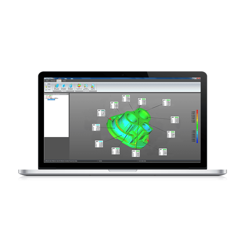 - Полный цикл анализа: Измерение расстояний, анализ элементов, построение геометрических допусков (GD&T) и сравнение с CAD-моделью через цветовые карты отклонений.